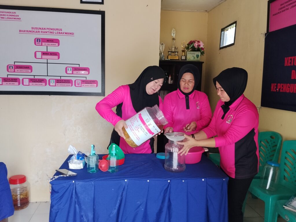 Kegiatan dipimpin langsung oleh Ketua Bhayangkari Ranting Lebakwangi Ny. Enci Wawan, didampingi Ny. Sondari Dadan selaku Seksi Kebudayaan dan Ny. Neneng Sigit sebagai Seksi Pumed (Publikasi Media).