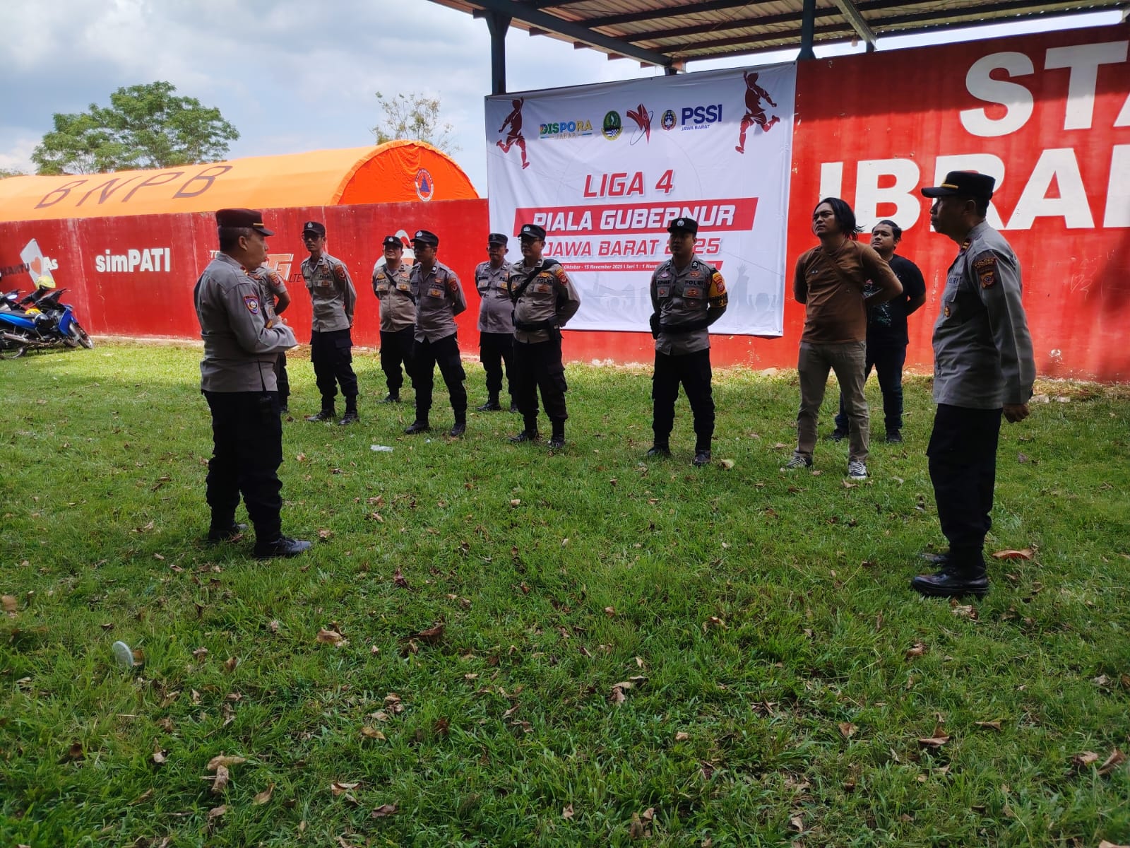 Polres Kuningan Polda Jabar – Kapolsek Luragung Iptu Tofan Alamsyah, SH, MH berikan arahan kepada Anggota Polsek Zona 4 Polres Kuningan dalam pelaksanaan Pengamanan Pertandingan Sepakbola Liga 4 Seri 2 Piala Gubernur tahun 2025 di Lapangan Sepak Bola Ibrahim Ajie Desa Luragunglandeuh Kecamatan Luragung Kabupaten Kuningan, Minggu siang pukul 12.30 Wib (26/10/2025).