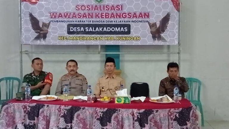 Kuningan – Kapolsek Mandirancan Polres Kuningan Polda Jabar, AKP Atang Mulyana, S.E, melaksanakan kegiatan Sosialisasi 4 Pilar dan Wawasan Kebangsaan di Aula Serbaguna Desa Salakadomas, Kecamatan Mandirancan, pada Kamis (30/10/2025). Kegiatan ini dihadiri oleh Camat Mandirancan, Danramil 1514 Pancalang yang diwakili oleh Sertu Sutomo, Kepala Desa Salakadomas, perangkat desa, tokoh masyarakat, tokoh pemuda, dan warga setempat.