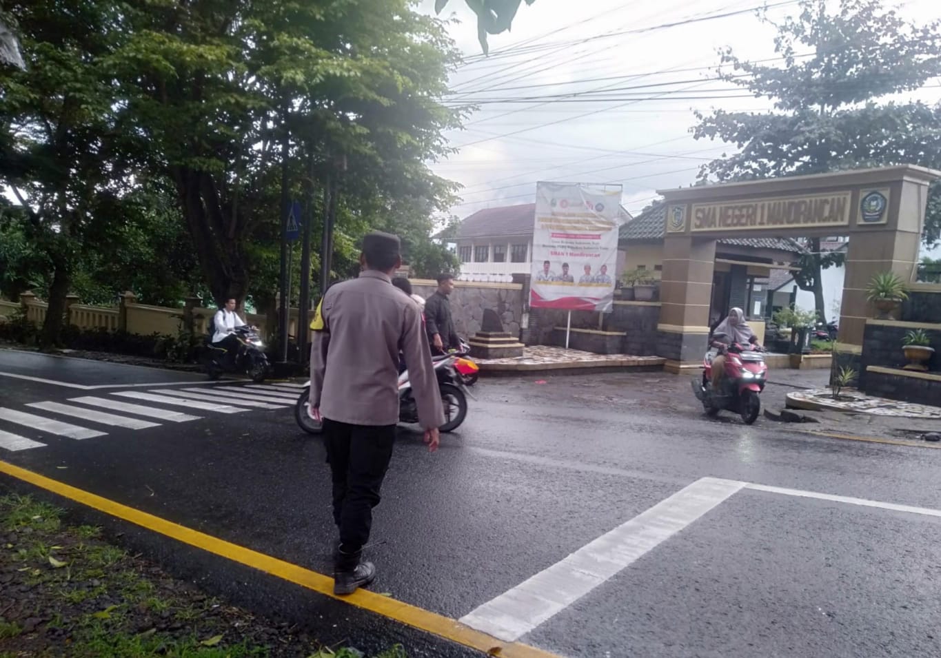 Anggota Polsek Mandirancan bersiaga melakukan Gatur Lantas di Simpang Tiga Fajar Mandirancan serta area depan Pasar Pancur Desa Sukasari yang menjadi titik temu pedagang dan pembeli. Selain itu, penjagaan juga diperketat di depan sekolah SMUN 1 dan SMPN 2 Mandirancan untuk mengantisipasi pertemuan arus kendaraan di jam masuk sekolah, Senin (02/02/2026).