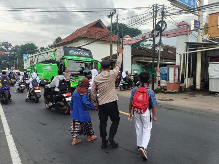 Petugas membantu pengguna jalan.