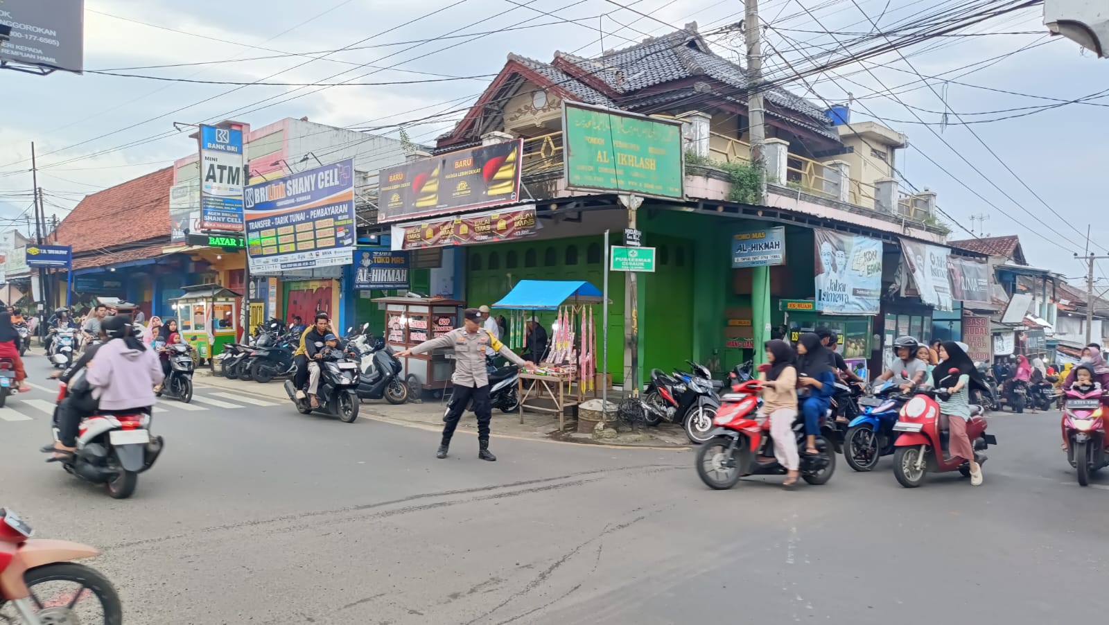 Cegah Kemacetan dan Gangguan Kamtibmas, Bhabinkamtibmas Polsek Ciawigebang Siaga di Alun-Alun Ciawigebang