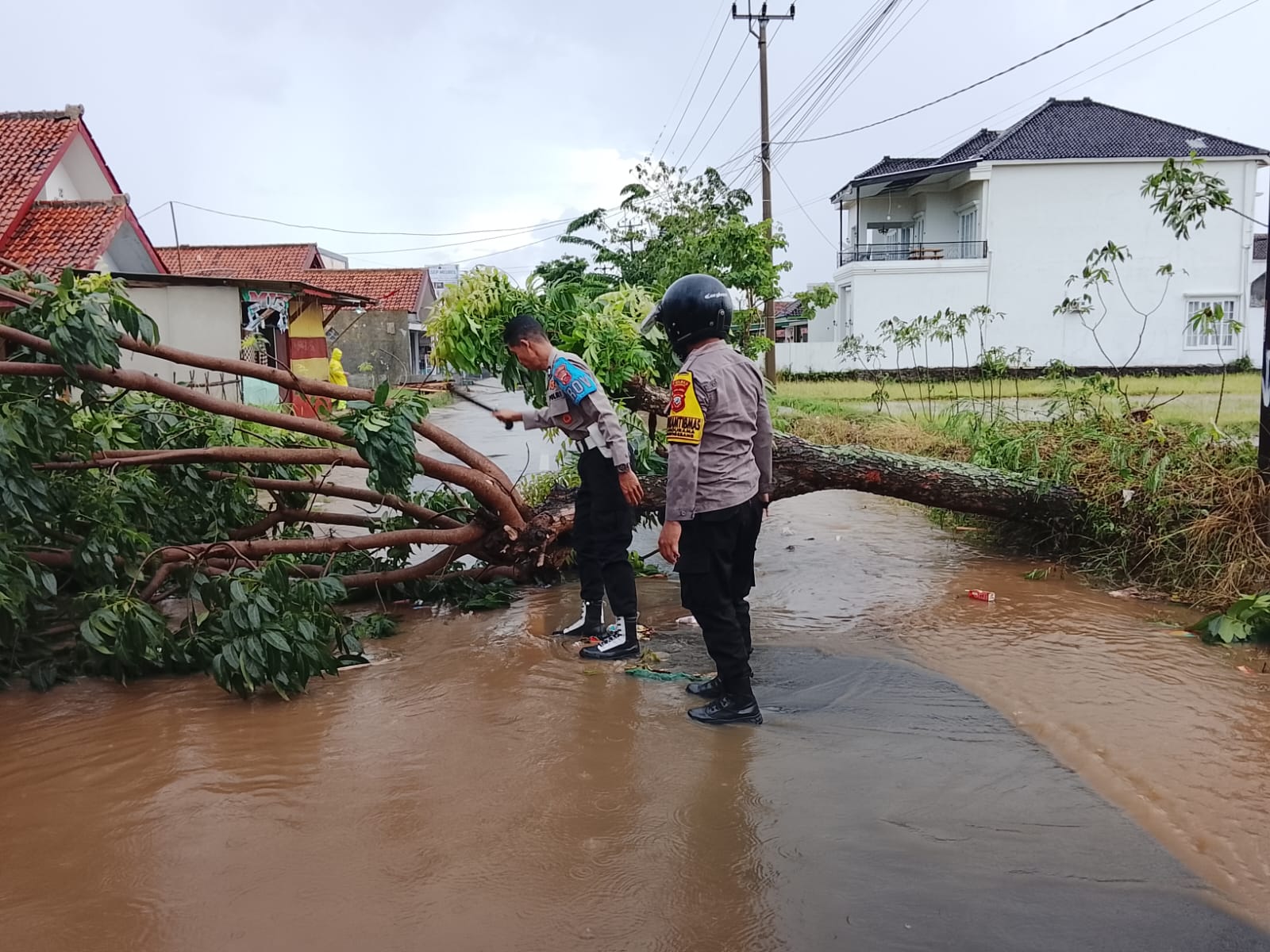Hujan Deras dan Angin Kencang, Polsek Ciawigebang Gerak Cepat Atasi Pohon Tumbang