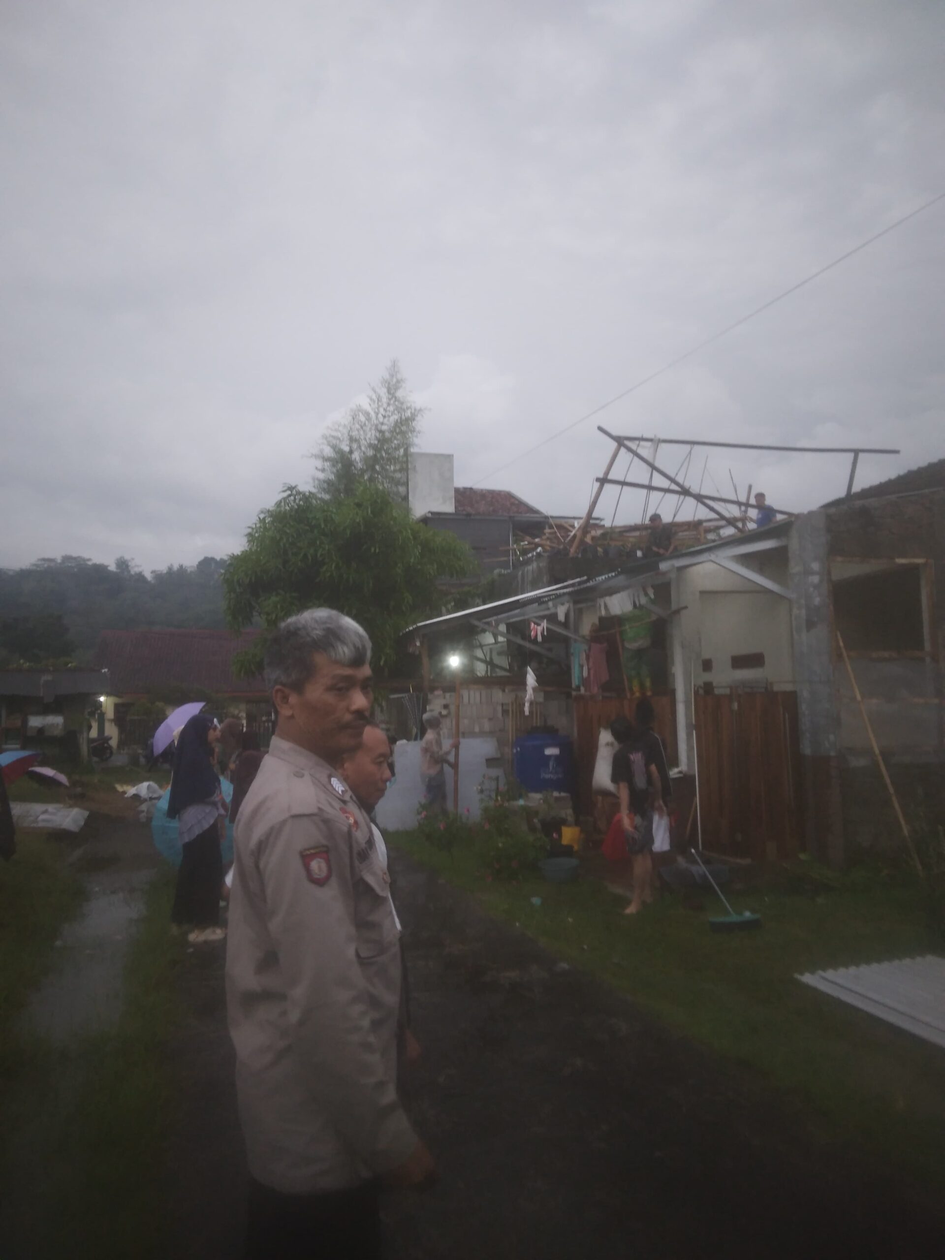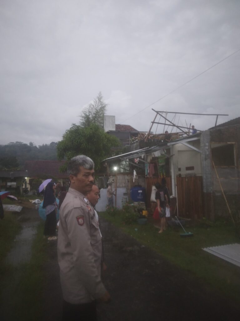 Kuningan, 31 Oktober 2025 — Hujan deras disertai angin kencang yang melanda wilayah Kecamatan Subang, Kabupaten Kuningan, pada Jumat sore (31/10) sekitar pukul 16.00 WIB menyebabkan tiga rumah warga di Dusun Manis, Desa Subang mengalami kerusakan pada bagian atap.Tiga rumah yang terdampak masing-masing milik Irpan (42), seorang PNS; Uci (55), wiraswasta; dan Muklas (50), petani, yang seluruhnya merupakan warga Dusun Manis, Desa Subang, Kecamatan Subang.Berdasarkan keterangan saksi Jaja Sugiarto (30) dan Ehon (51), peristiwa tersebut terjadi secara tiba-tiba ketika hujan lebat turun disertai hembusan angin kencang. Akibatnya, bagian atap rumah milik warga terangkat dan roboh sebagian.Mendapat laporan dari perangkat desa, personel Polsek Subang yang dipimpin KASPKT Bripka Dian bersama Kanit Intelkam Bripka Cahyadi segera mendatangi lokasi kejadian untuk melakukan pemeriksaan dan membantu warga.Kapolsek Subang IPTU Suhandi, S.M. menjelaskan bahwa tidak ada korban jiwa dalam kejadian ini, namun kerugian materiil masih dalam pendataan.> “Kami sudah berkoordinasi dengan pihak Pemerintah Desa, Forkopimcam, dan BPBD Kabupaten Kuningan untuk penanganan lebih lanjut. Alhamdulillah tidak ada korban jiwa, namun warga kami imbau tetap waspada karena saat ini sudah memasuki musim penghujan,” ujar Kapolsek.Proses evakuasi material atap rumah yang ambruk dilakukan secara gotong royong oleh warga setempat bersama perangkat desa. Situasi di lokasi kejadian saat ini telah berangsur normal dan kondusif.