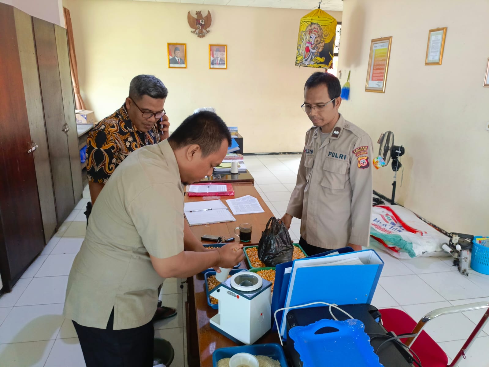 Polres Kuningan Polda Jabar – Pengetahuan mengenai standar kualitas hasil panen sangat penting dimiliki oleh para petani agar tidak terjebak dalam rantai pasar yang merugikan. Kanit Binmas Aipda Rosid bersama Brigpol Singgih Priyogo memberikan contoh nyata dengan membawa sampel jagung hibrida milik petani Pakembangan ke Bulog, sekaligus memberikan edukasi mengenai pentingnya kadar air dalam penentuan kualitas.
