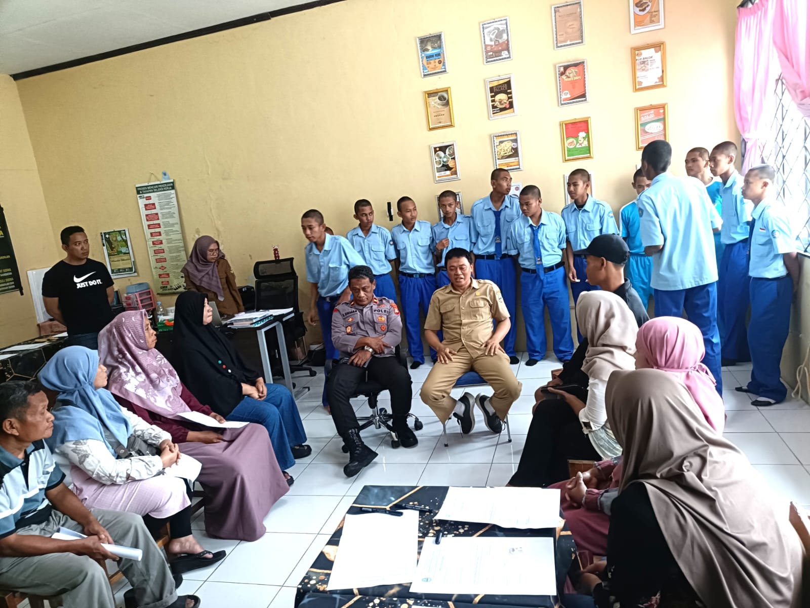 IPDA Lukman Hakim Berikan Pengarahan kepada Siswa serta Orang Tua Wali Murid SMK Negeri 6 Kuningan yang Diduga Akan Terlibat Tawuran sebagai Upaya Pencegahan Kenakalan Remaja