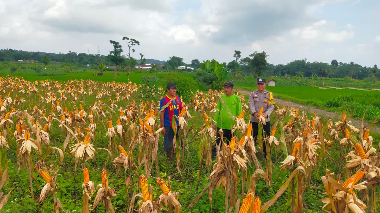 Menjelang panen, Bhabinkamtibmas melakukan monitoring lahan jagung.