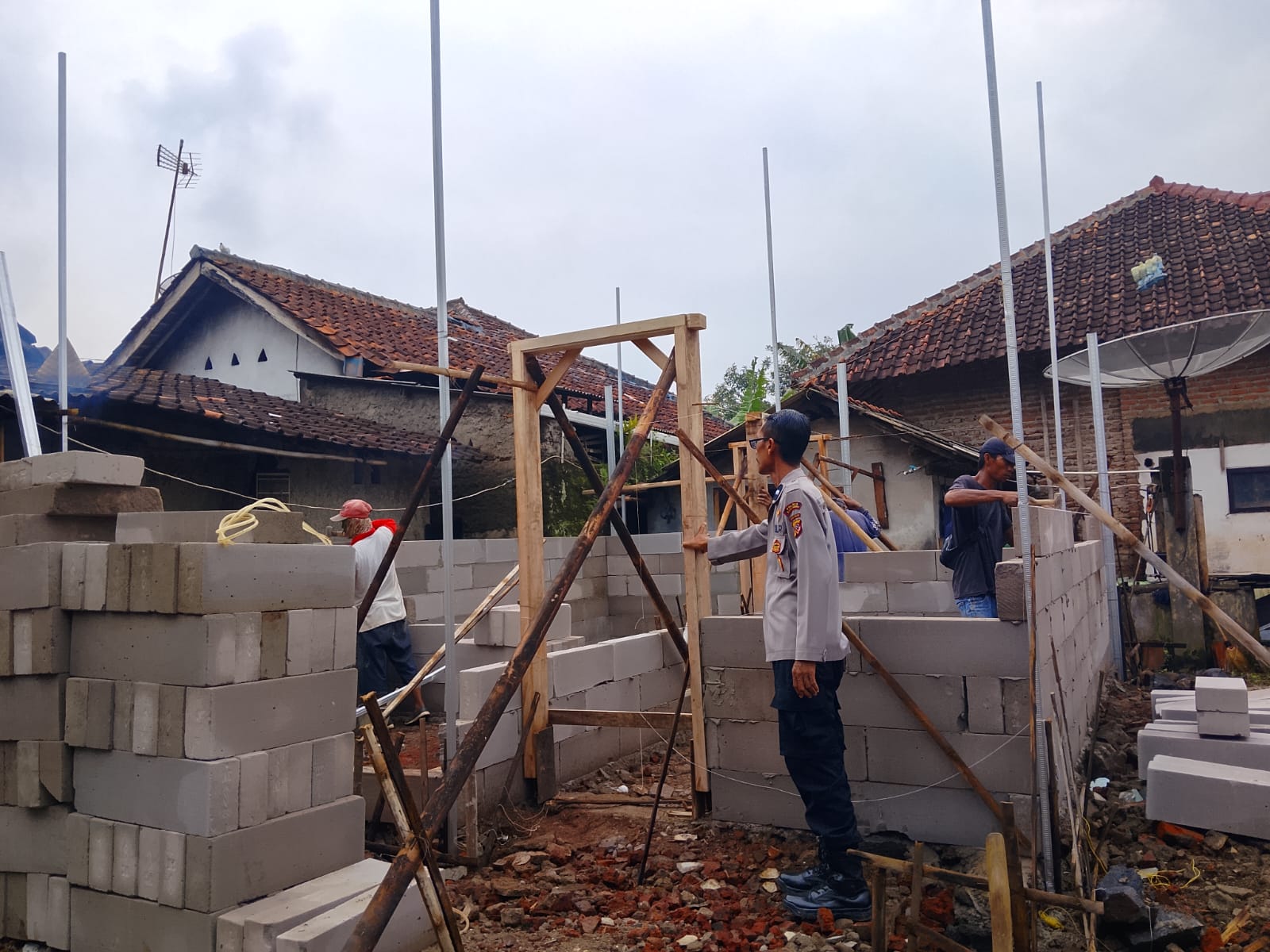 Polres Kuningan Polda Jabar – Kanit Binmas Polsek Cidahu, Aipda Rudianto, melakukan monitoring pembangunan rumah layak huni (rutilahu) Polres Kuningan di Desa Kertawinangun, Kecamatan Cidahu, Kabupaten Kuningan. Rumah yang dibangun adalah milik Ibu Yanti, seorang warga kurang mampu yang tinggal di desa tersebut.