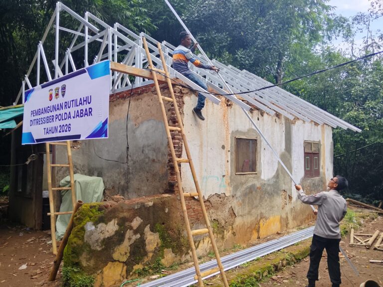 Polres Kuningan Polda Jabar – Kanit Binmas Polsek Cidahu, Aipda Rudianto, melakukan monitoring pembangunan rumah layak huni (rutilahu) Ditressiber Polda Jabar di Desa Cihideunghilir, Kecamatan Cidahu, Kabupaten Kuningan. Rumah yang dibangun adalah milik Ibu Kini, seorang lansia berusia 88 tahun yang tinggal di desa tersebut.