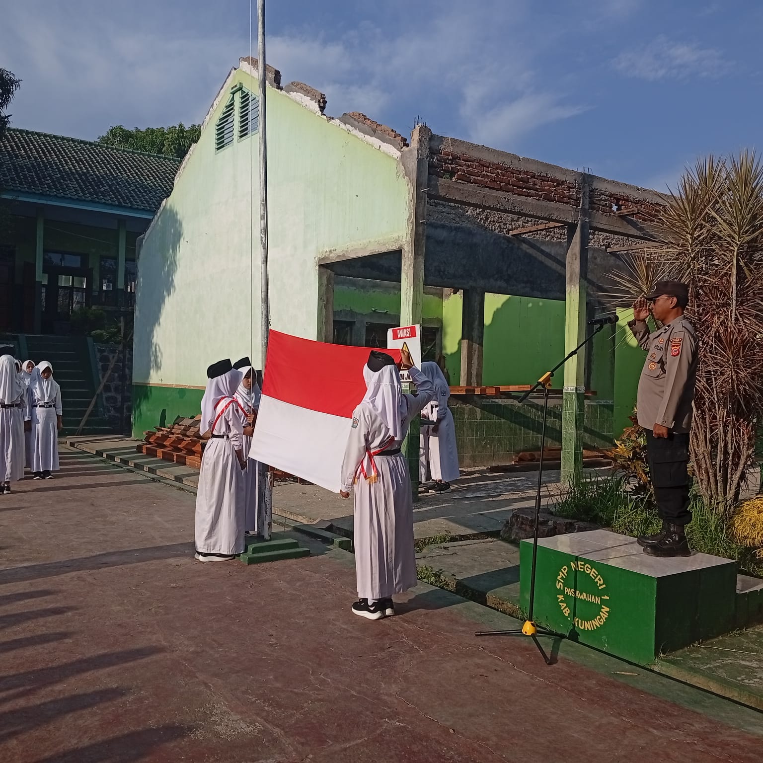 Kuningan, 7 Oktober 2025 — Dalam rangka menanamkan kedisiplinan serta menumbuhkan kesadaran akan pentingnya keamanan dan ketertiban di lingkungan sekolah, Kanit Binmas Polsek Pasawahan AIPDA Ikhsan Akhsani melaksanakan kegiatan upacara bendera sekaligus memberikan arahan dan bimbingan kepada siswa-siswi SMPN 1 Pasawahan, Senin (07/10/2025).