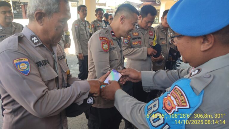 Polres Kuningan Polda Jabar – Sebagai bagian dari upaya berkelanjutan dalam menjaga kedisiplinan dan integritas anggota, Kanit Propam Polsek Mandirancan, Aiptu Munawan, S.H., semakin intensif melaksanakan pengawasan internal melalui operasi Gaktibplin. Pada Selasa, 14 Oktober 2025, operasi ini kembali digelar dengan sasaran memastikan seluruh anggota Polsek Mandirancan mematuhi aturan dan standar operasional prosedur yang berlaku.