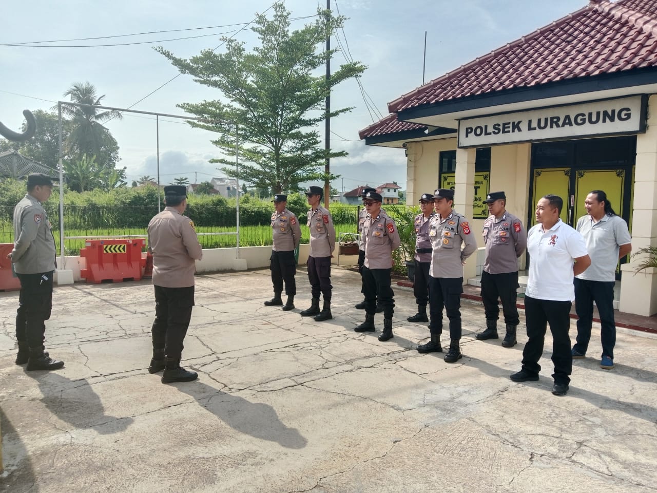 POLRES KUNINGAN – Anggota Polsek Luragung Polres Kuningan Polda Jabar Melaksanakan apel pagi dan Gaktibplin yang dipimpin langsung oleh Kapolsek Luragung Iptu Tofan Alamsyah, SH, MH, dengan tujuan untuk memberikan semangat dan meningkatkan disiplin anggota, serta memberikan arahan terkait pentingnya pelayanan yang baik dan cepat secara profesional kepada masyarakat, Senin (27/10/2025).