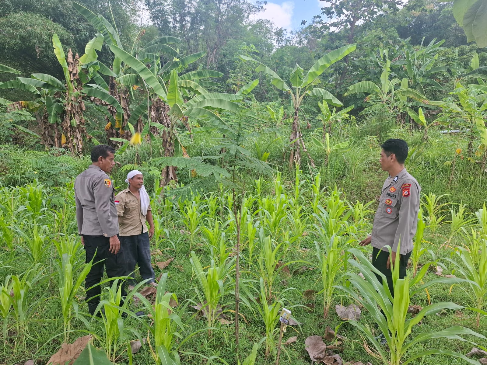 Dalam kesempatan tersebut, AKP Amdan Saleh, SH, dan Bripka Ahmad Fauzi berinteraksi dengan petani dan memantau kondisi tanaman jagung hibrida. Mereka juga memberikan motivasi dan dukungan kepada petani untuk meningkatkan produktivitas dan kualitas tanaman.