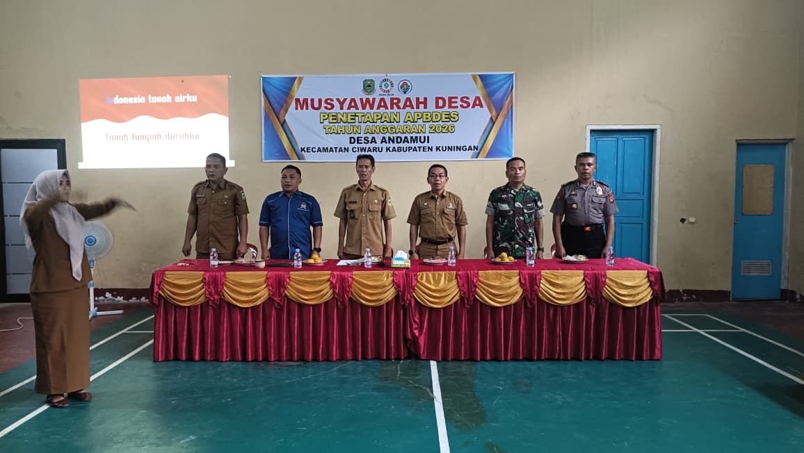 Ciwaru – Kapolsek Ciwaru menghadiri kegiatan Musyawarah Desa (Musdes) dalam rangka penetapan Anggaran Pendapatan dan Belanja Desa (APBDes) yang dilaksanakan di Desa Andamui, Kecamatan Ciwaru, Kabupaten Kuningan, pada hari ini. Senin (09/02/2026).