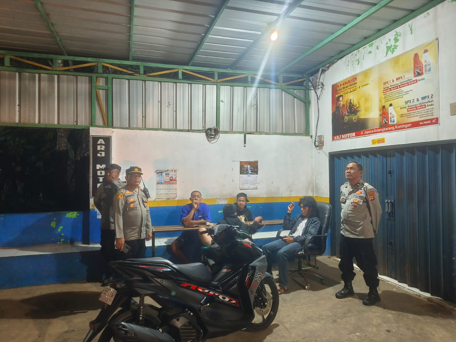 Patroli Malam Hari, Bhabinkamtibmas Polsek Ciawigebang Sampaikan Himbauan Kamtibmas di Ciawilor