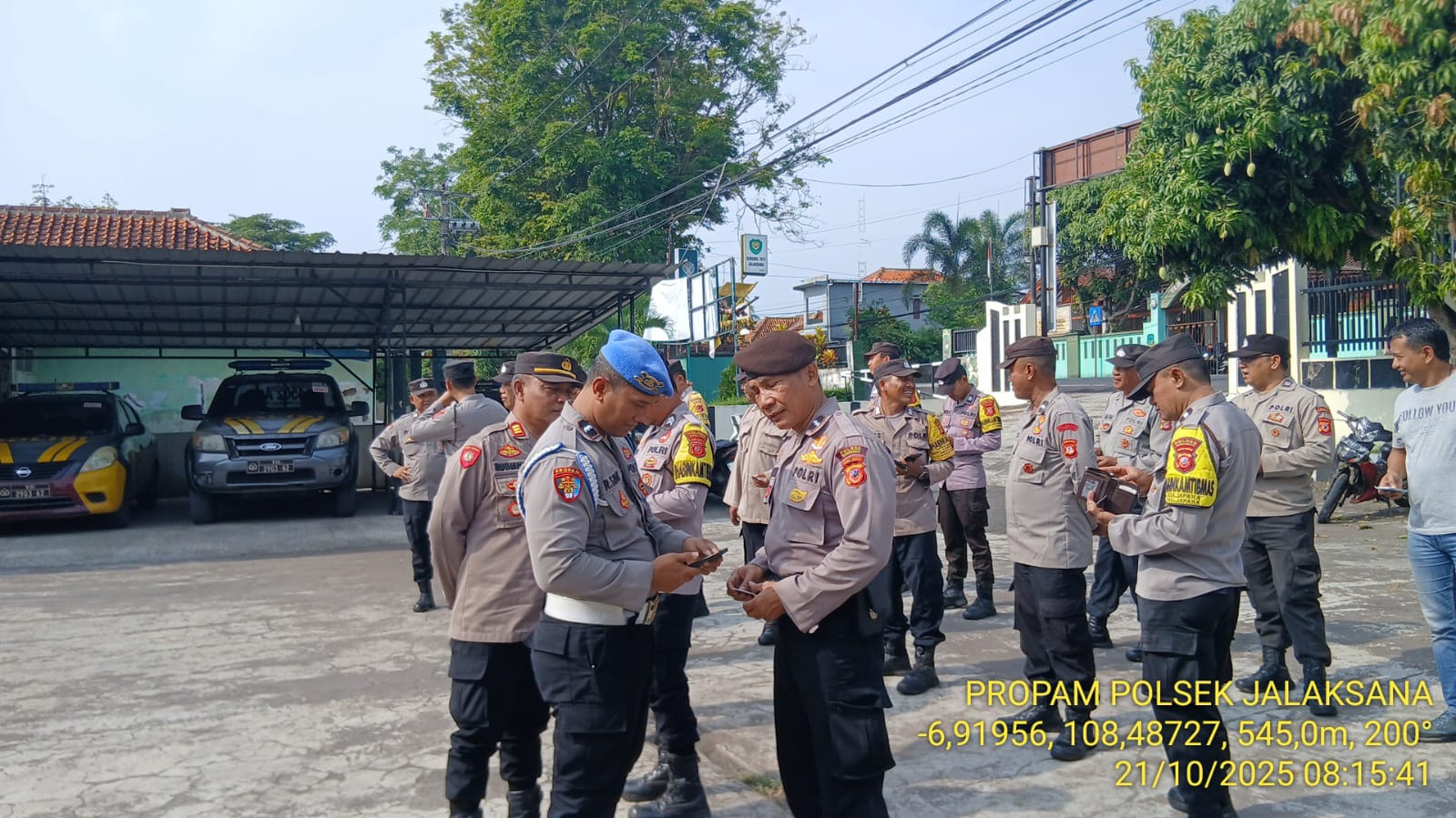 Pada hari Selasa, tanggal 21 Oktober 2025, AKP Imam Rubianto, Kapolsek Jalaksana, bersama Kanit Propam Aipda R. Sidik, ST, melaksanakan apel pagi rutin di Mapolsek Jalaksana. Apel pagi ini bertujuan untuk meningkatkan kedisiplinan dan kinerja anggota Polsek Jalaksana dalam pelaksanaan tugas di lapangan.