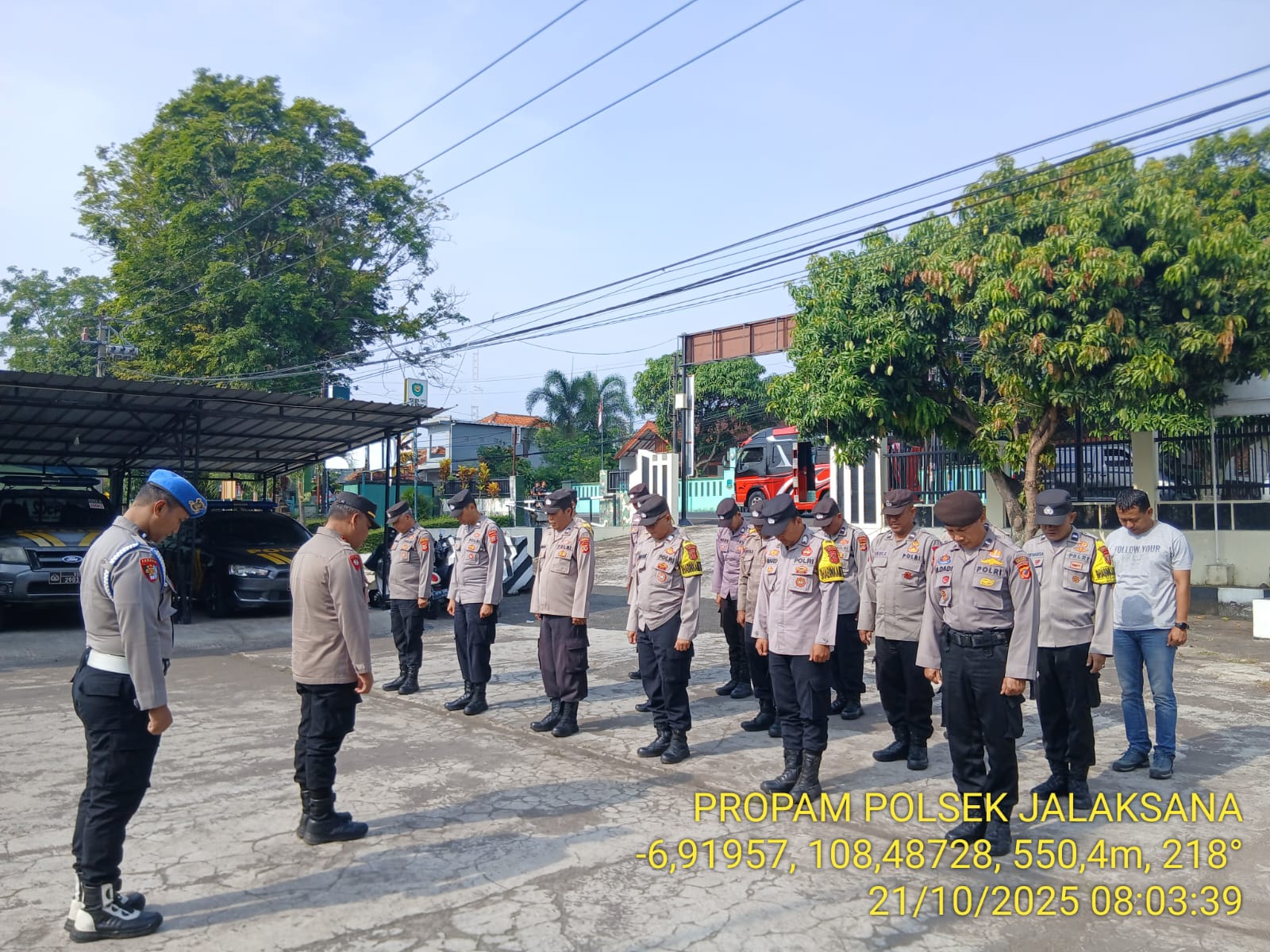 Pada hari Selasa, tanggal 21 Oktober 2025, AKP Imam Rubianto, Kapolsek Jalaksana, melaksanakan apel pagi rutin di Mapolsek Jalaksana. Apel pagi ini bertujuan untuk meningkatkan kedisiplinan dan kinerja anggota Polsek Jalaksana dalam menciptakan rasa aman di masyarakat dan meningkatkan kegiatan sosial dan pengabdian kepada masyarakat.