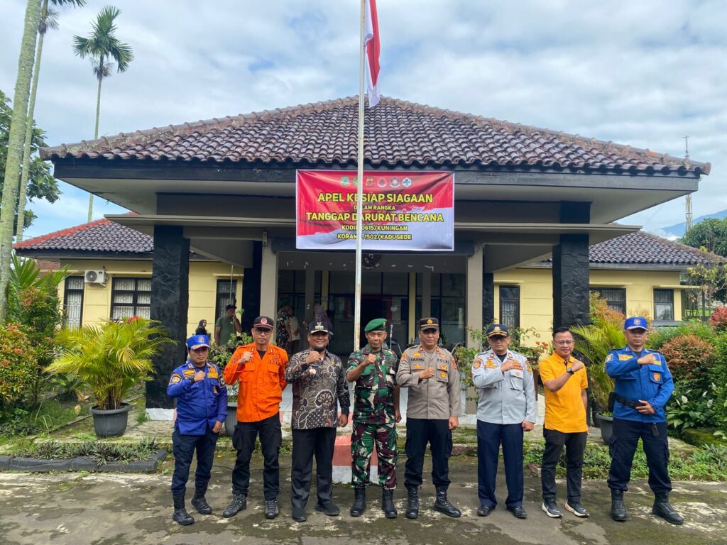 Kadugede, Kuningan — Kapolsek Kadugede IPTU Wili Rukwili, S.M. menghadiri kegiatan Apel Kesiapsiagaan dalam rangka Tanggap Darurat Bencana tingkat Kecamatan Kadugede yang digelar pada Jum’at, (21/11/2025), bertempat di halaman Kantor Kecamatan Kadugede. Kegiatan berlangsung dari pukul 08.00 hingga 09.00 WIB dan diikuti oleh lintas sektor terkait sebagai bentuk kesiapan menghadapi potensi bencana alam di wilayah tersebut.