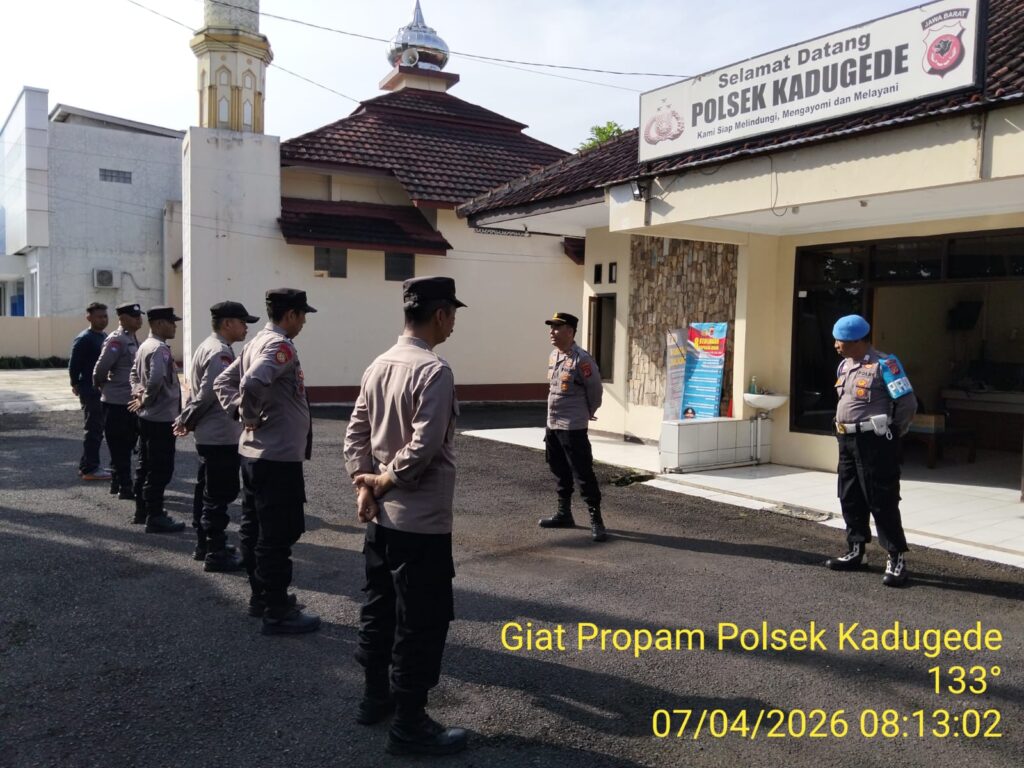 Kuningan – Dalam rangka meningkatkan disiplin dan kinerja anggota, Kapolsek Kadugede, Polres Kuningan, Polda Jabar, Akp Wili Rukwili, S.M., memimpin apel pagi di halaman Mapolsek Kadugede pada Selasa (07/04/2026). Apel ini menjadi momen penting untuk memberikan arahan serta atensi pimpinan kepada seluruh anggota dalam menjalankan tugas kepolisian.