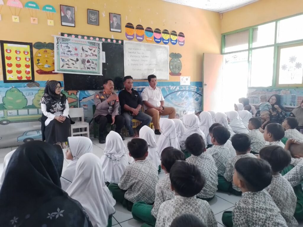 Kapolsek Lebakwangi memberikan arahan kepada anak sekolah SDN 1 GALAHERANG