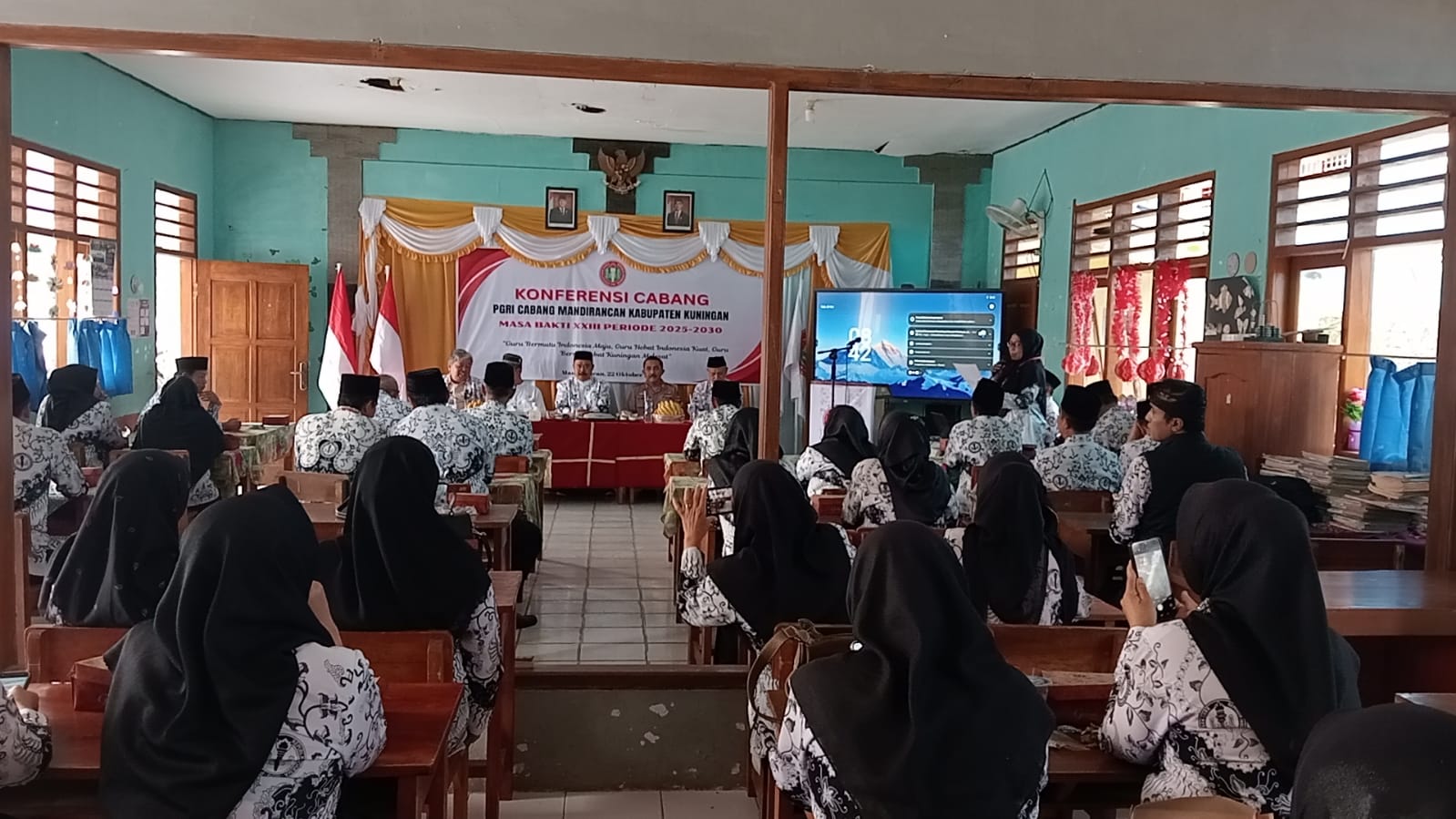 Kuningan – Bertempat di Aula SDN Mandirancan, Kapolsek Mandirancan AKP Atang Mulyana, S.E. menghadiri kegiatan Konferensi PGRI Cabang Mandirancan Masa Bakti XXIII Tahun 2025 pada Rabu (22/10/2025). Kegiatan ini diadakan dalam rangka pemilihan ketua dan pengurus baru PGRI Kecamatan Mandirancan periode 2025-2030.