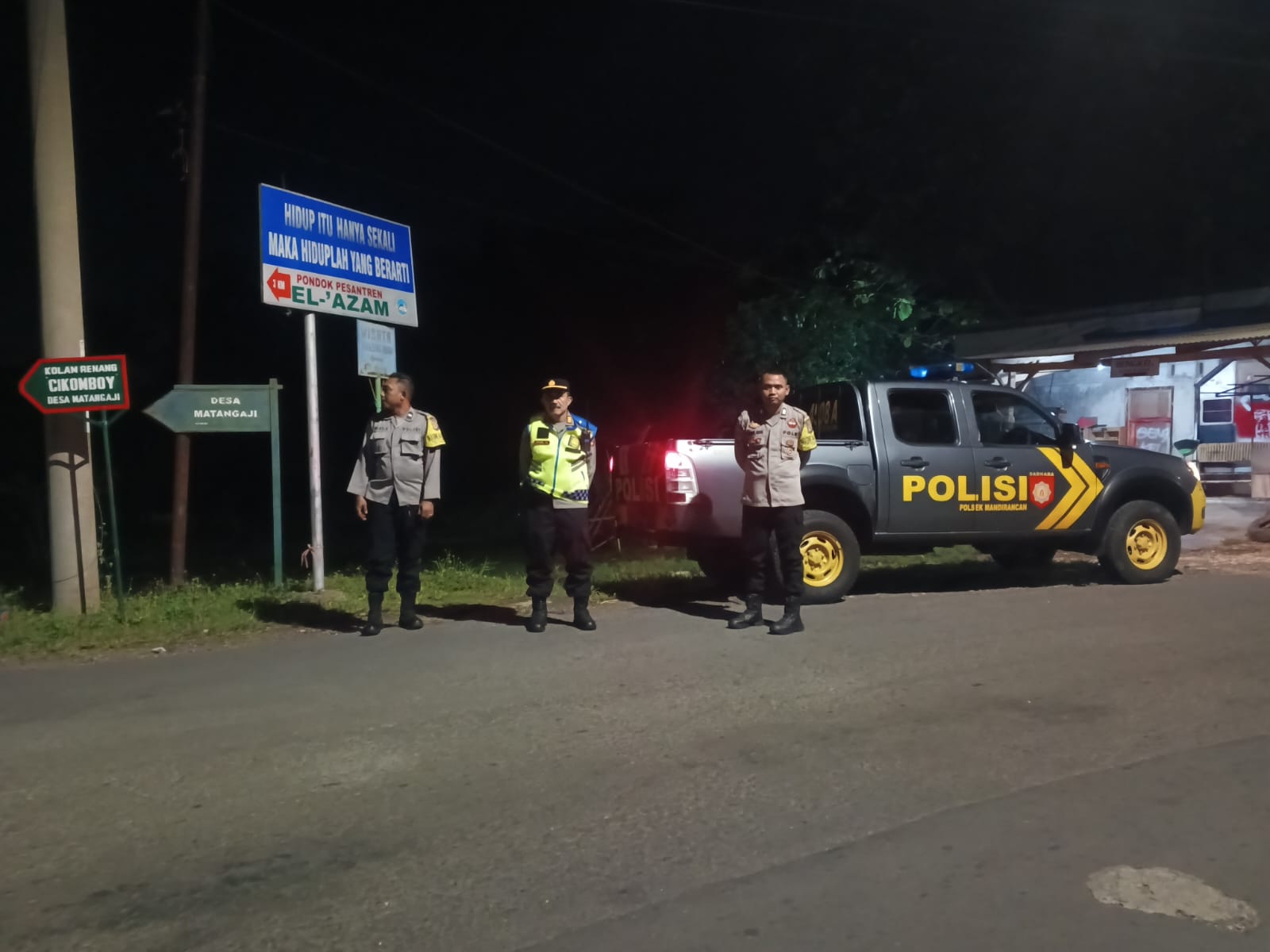 Kuningan – Dini hari Minggu (26/10/2025), Kapolsek Mandirancan AKP Atang Mulyana, SE memimpin patroli KRYD (Kegiatan Rutin Yang Ditingkatkan) di Tugu Macan Desa Cirea, Kecamatan Mandirancan. Patroli dini hari ini dilakukan untuk mengantisipasi kejahatan malam dan menjaga keamanan wilayah.