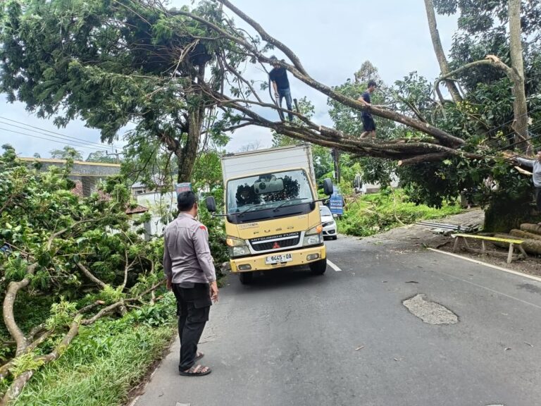 Kuningan – Respons cepat ditunjukkan Kapolsek Pancalang, Ipda Lukman Hakim, saat terjadi bencana alam pohon tumbang yang menutup akses jalan penghubung Desa Silebu Kecamatan Pancalang menuju Kecamatan Cilimus dan Kecamatan Mandirancan, Jumat (20/2/2026).