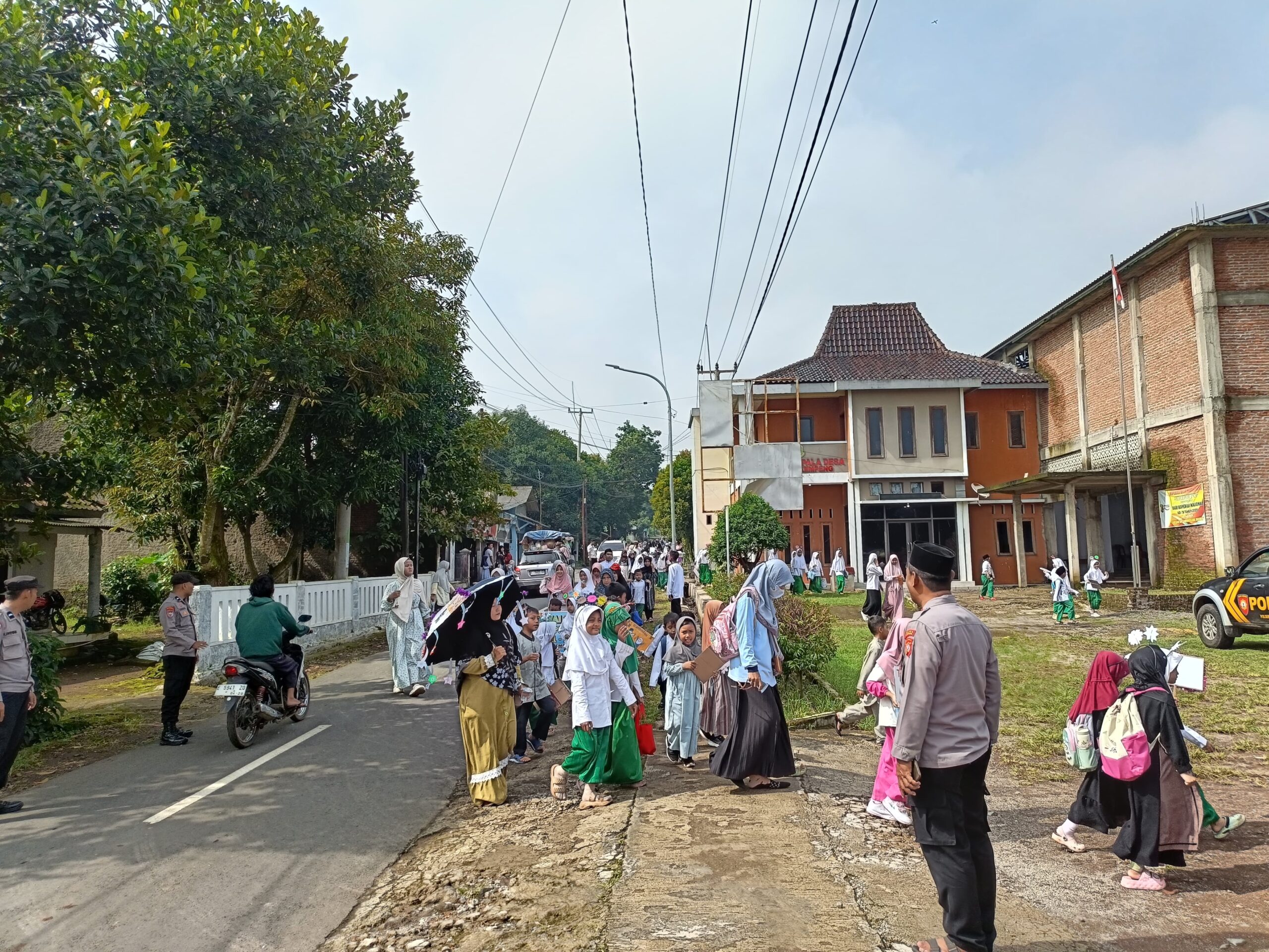 Kapolsek Pancalang Pimpin Langsung Monitoring dan Pengawalan Pawai Murid PAUD Banu Salih di Balai Desa Sindangkempeng dalam Rangka Menyambut Ramadhan 1447 H