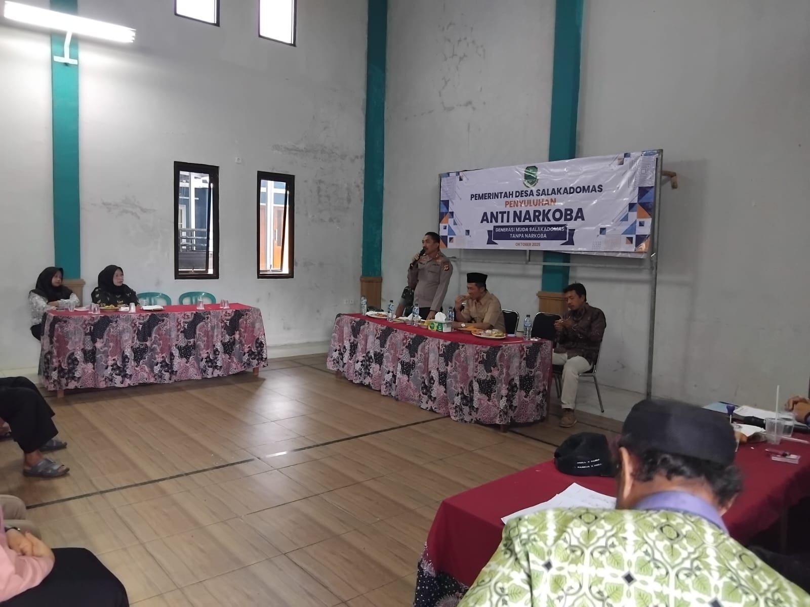 Acara dibuka dengan menyanyikan Lagu Indonesia Raya dan sambutan Kepala Desa Salakadomas, bapak Agus, sebelum Kapolsek dan Camat Mandirancan memberikan materi tentang dampak negatif penyalahgunaan narkoba bagi pemuda dan lingkungan sosial. Materi disampaikan secara interaktif agar pemuda lebih mudah memahami risiko narkoba.
