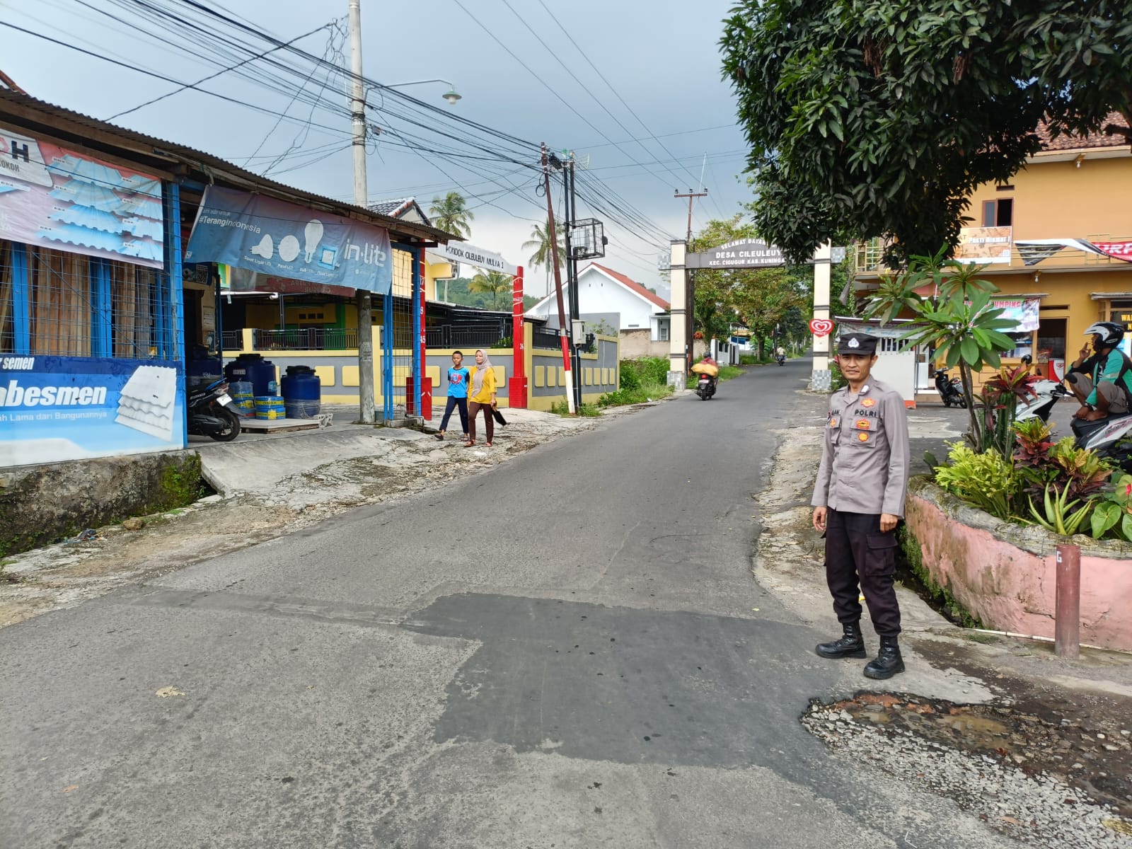 Kaspkt 3 polsek Cigugur laksanakan pengaturan lalu lintas di pertigaan cileuleuy cegah kemacetan arus lalu lintas