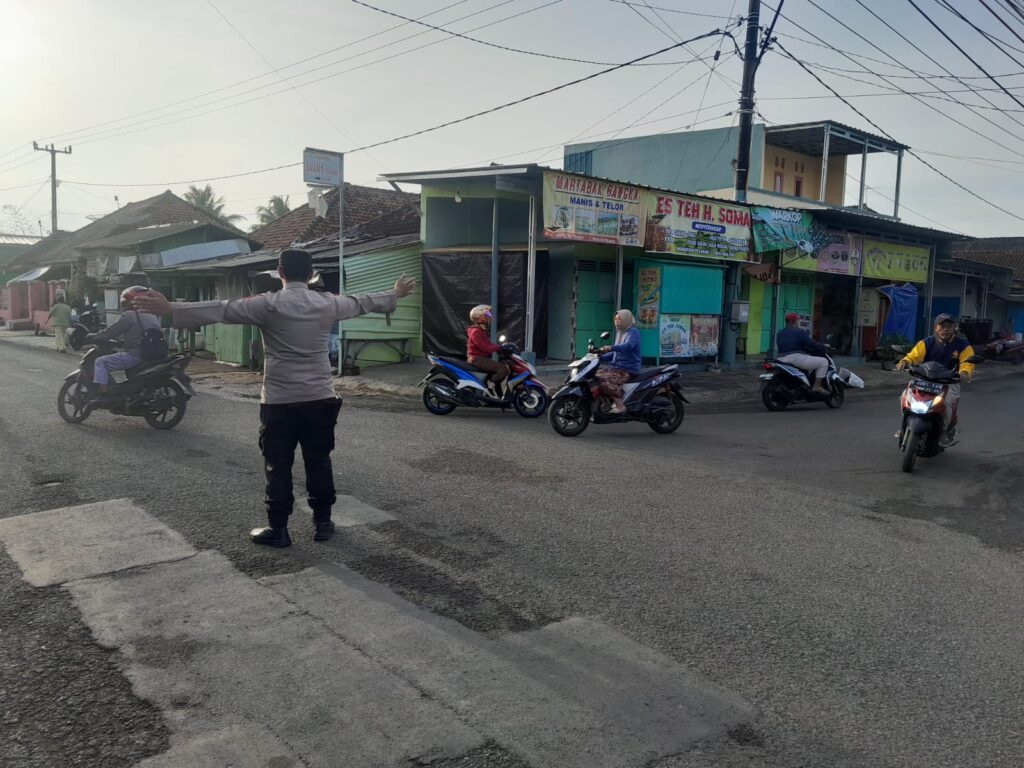 Personel Polsek Lebakwangi terlihat sigap melakukan pengaturan arus lalu lintas, membantu penyeberangan, serta memberikan imbauan kepada pengguna jalan agar selalu mematuhi peraturan lalu lintas demi keselamatan bersama.