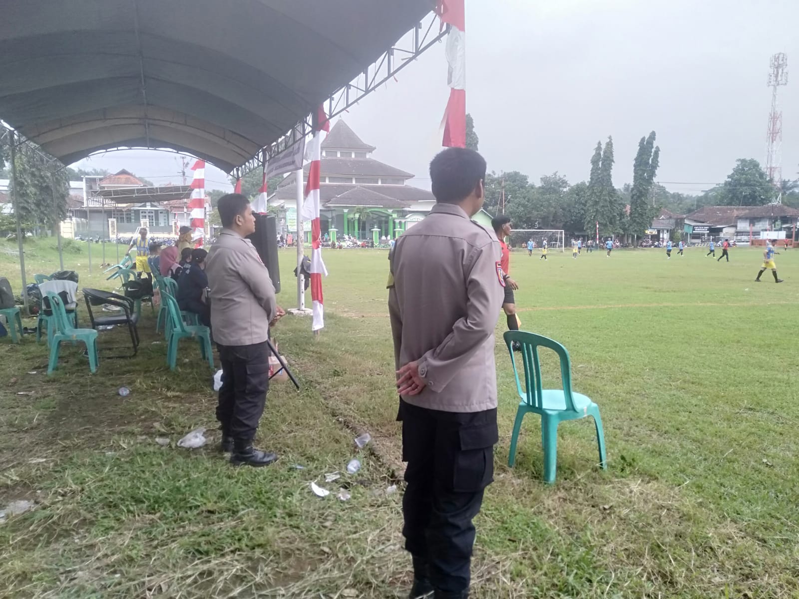 Unit Patroli Polsek Mandirancan di bawah kepemimpinan Aipda Johan melakukan pengawalan ketat pada pertandingan sepak bola Remao di Lapangan Kecamatan. Petugas disiagakan untuk mengantisipasi segala bentuk gangguan keamanan, mulai dari potensi tawuran antar suporter hingga tindakan premanisme di area lokasi, Minggu (01/02/2026).