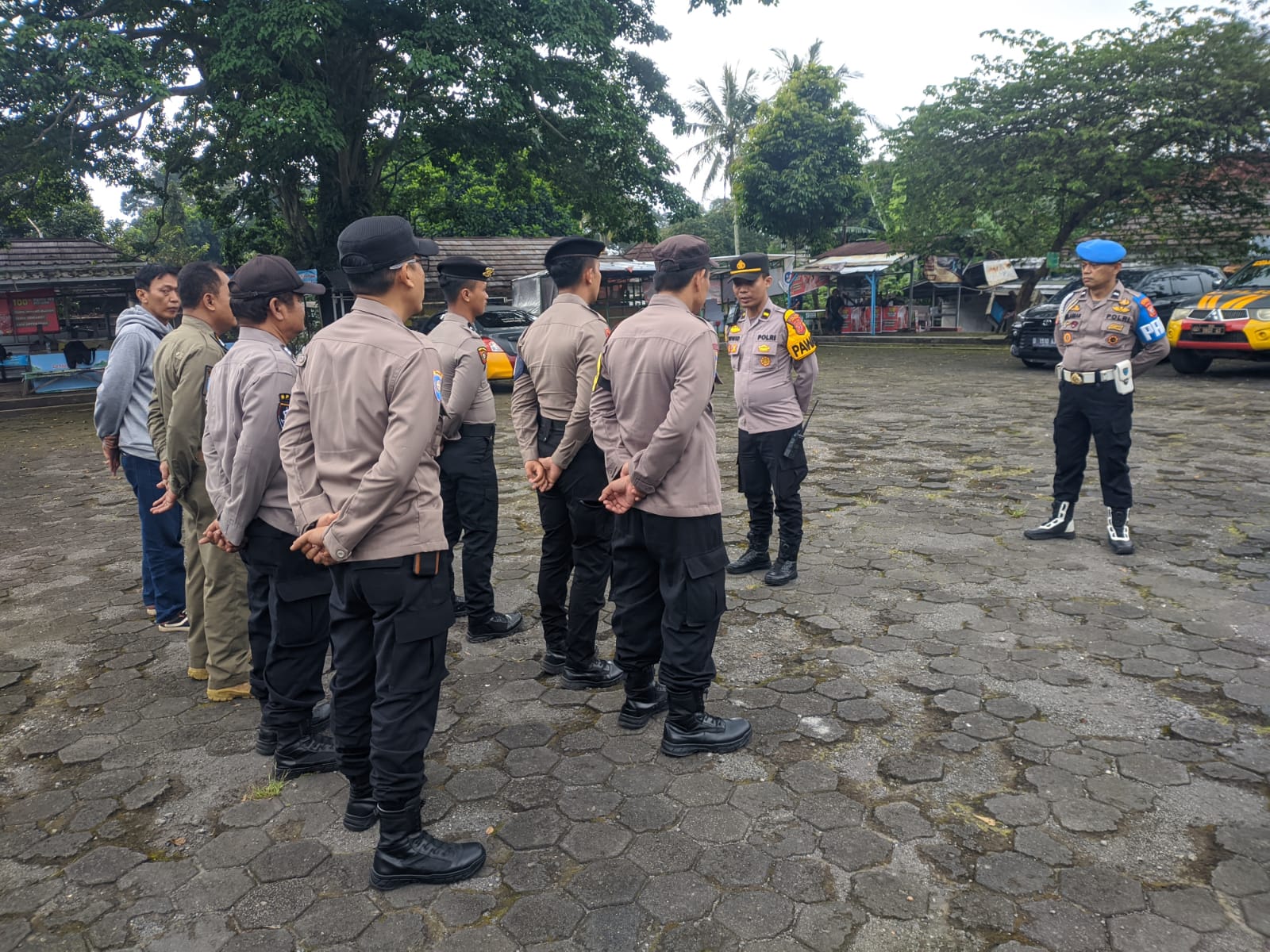 Seluruh personel terlihat siap menjalankan tugas pengamanan sesuai dengan perintah yang diberikan.