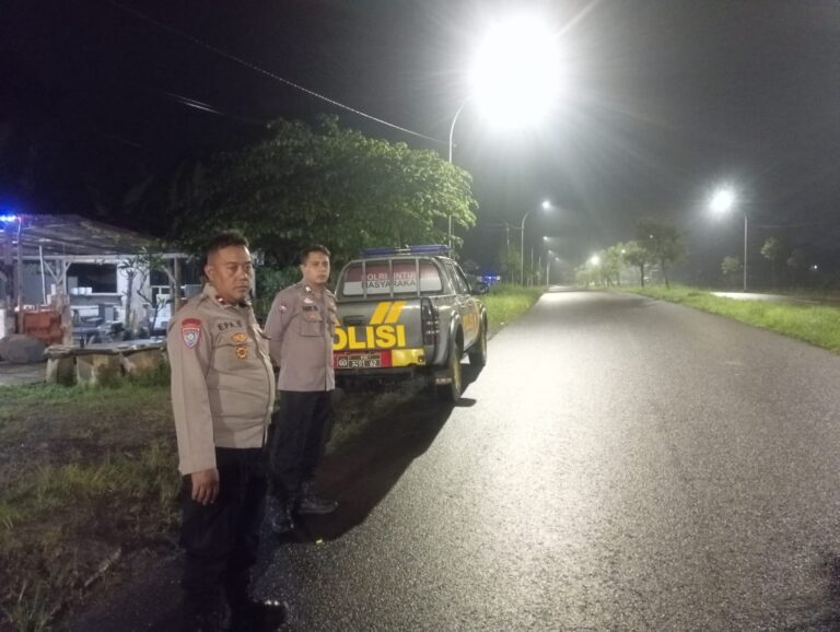 Jalan Baru Desa Panawuan menjadi lokasi utama patroli. Petugas memantau potensi gangguan kamtibmas.