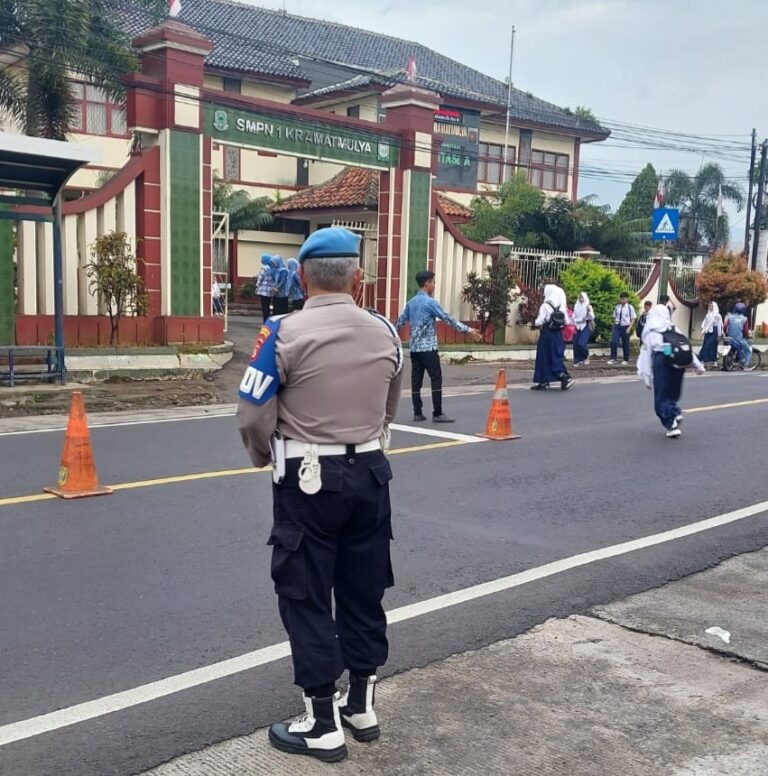 Pengaturan lalu lintas di pagi hari kembali dilaksanakan oleh jajaran Polsek Kramatmulya.