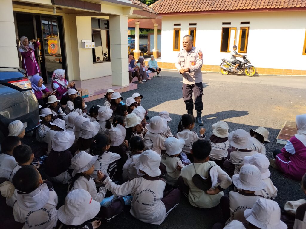 Lebakwangi – Upaya menanamkan nilai disiplin dan kesadaran hukum sejak usia dini terus dilakukan Polsek Lebakwangi melalui program Polisi Sahabat Anak. Kegiatan edukatif ini diikuti oleh siswa TK Negeri Cinagara dalam rangka outing class, Rabu (15/04/2026) pukul 07.30 WIB.
