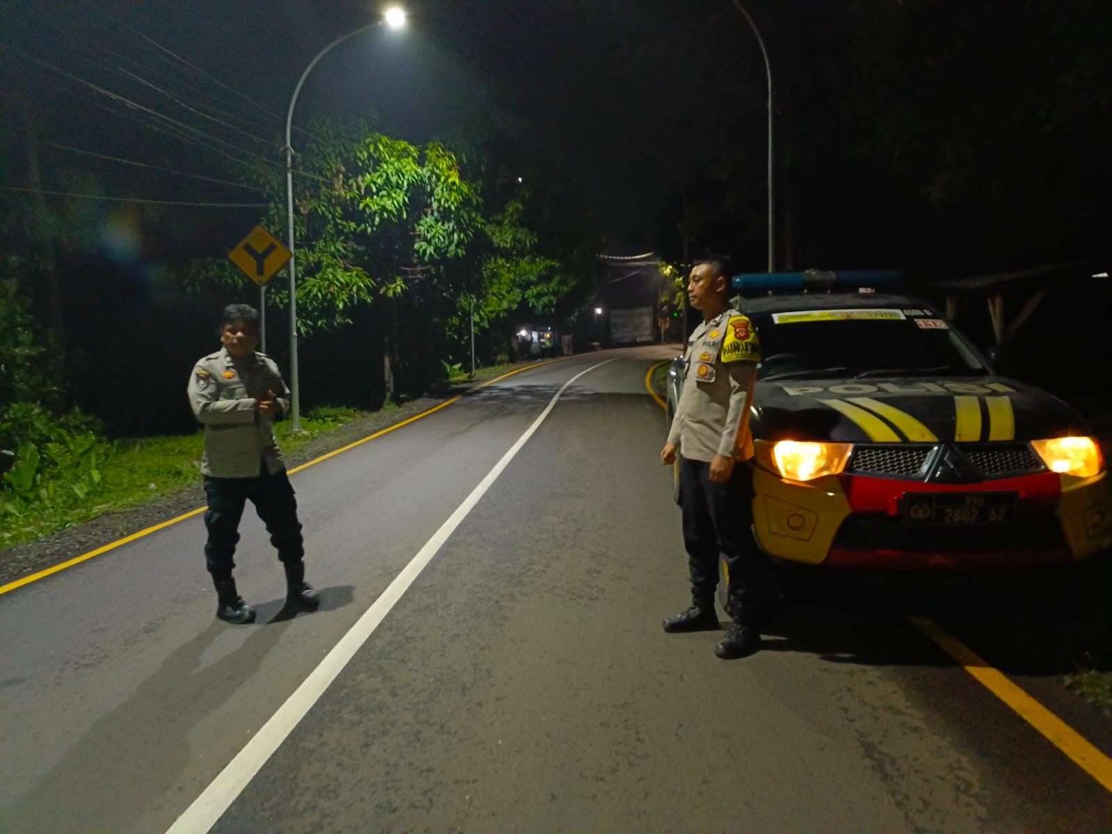 POLRES KUNINGAN POLDA JABAR – Aiptu Juro Jauhari, SH KA SPKT 2 Polsek Mandirancan bersama dua anggota intensif melakukan patroli dialogis dan patroli KRYD malam hari di Jalan Raya Desa Nanggela, perbatasan antar desa dan kecamatan.