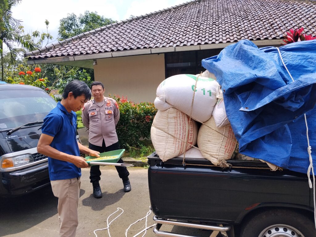 Pada Selasa (10/3/2026), anggota Polsek Lebakwangi Bripka Dadan Wardhana bersama Bripka Amrizal melaksanakan pendampingan kegiatan penyerapan hasil panen jagung dari petani yang tergabung dalam Kelompok Tani (Poktan) Makmur Jaya di Desa Galaherang, Kecamatan Maleber, Kabupaten Kuningan.