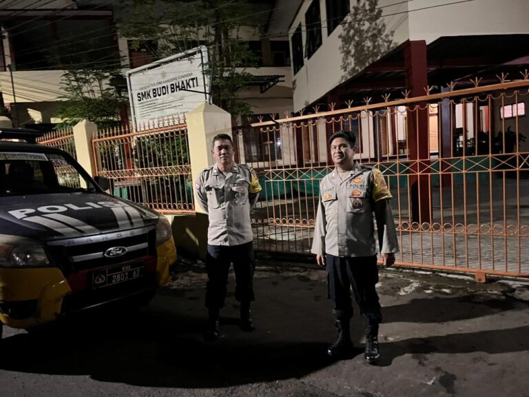 Polres Kuningan Polda Jabar – Saat warga Mandirancan mulai terlelap dalam tidurnya, nampak sorot lampu senter personil kepolisian menyinari sudut-sudut gedung sekolah. Aiptu Sandi Waluyo bersama tim patroli sedang menjalankan misi mulia untuk memastikan SMK Budy Bhakti dan sekolah sekitarnya dalam keadaan aman terkendali.