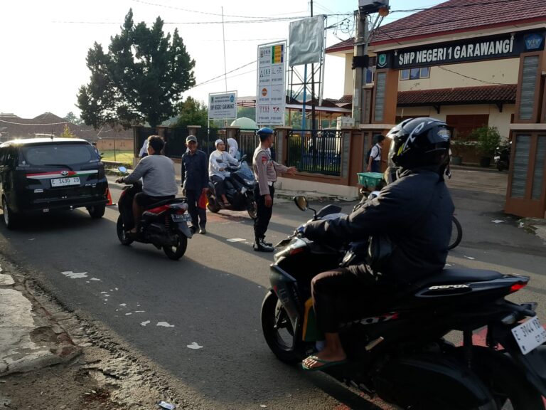 Optimalkan Pelayanan Pagi, Polsek Garawangi Amankan Jalur Sekolah dan Pasar