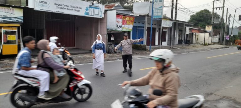 Pos Pam Bojong Polsek Cilimus melaksanakan pengaturan pagi untuk keselamatan anak sekolah.