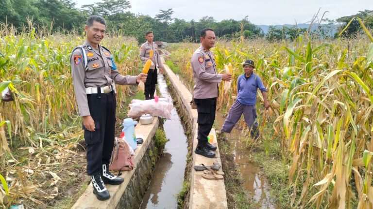 Polres Kuningan Polda Jabar – Polsek Ciawigebang Polres Kuningan Polda Jabar melakukan monitoring kegiatan panen jagung hibrida di Lahan Baku Sawah (LBS) Blok Lingga RT 008 RW 002 Desa Lebaksiuh, Kecamatan Ciawigebang, Kabupaten Kuningan, Selasa (9/12). Kegiatan tersebut dilaksanakan oleh para petani Desa Lebaksiuh sebagai bagian dari upaya peningkatan produktivitas pertanian sekaligus mendukung program ketahanan pangan.