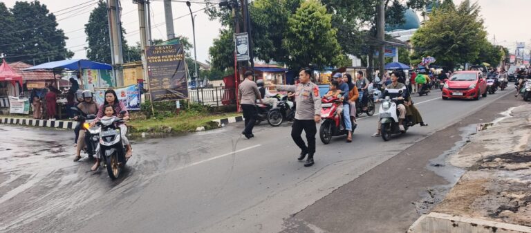 Pasca Idul Fitri, Personel Pos PAM Ciawigebang Ops Ketupat Lodaya 2026 Siaga di Simpang Tiga Alun-Alun Ciawigebang