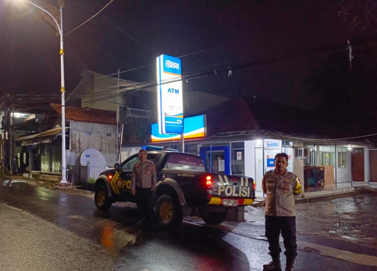 Polres Kuningan Polda Jabar – Hujan deras tak menghentikan anggota Polsek Mandirancan untuk memberikan rasa aman kepada masyarakat. Dipimpin Ka SPKT 2 Aiptu Juro Jauhari, SH, patroli dini hari menyasar obyek vital perbankan dan pertokoan.