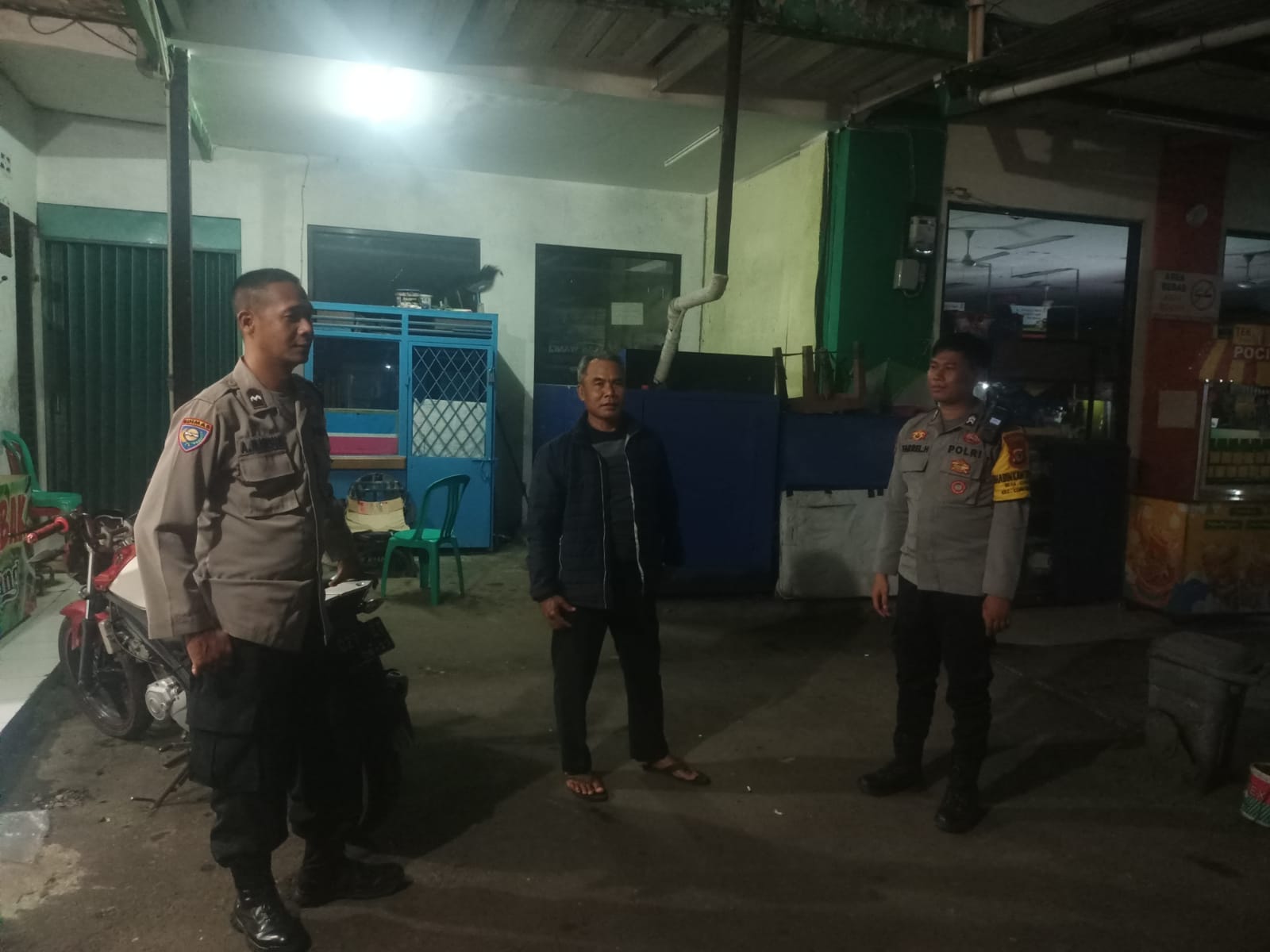 Patroli Jelang Nataru 2026, Bhabinkamtibmas Polsek Ciawigebang Sambangi Penjaga Malam Toserba Fajar