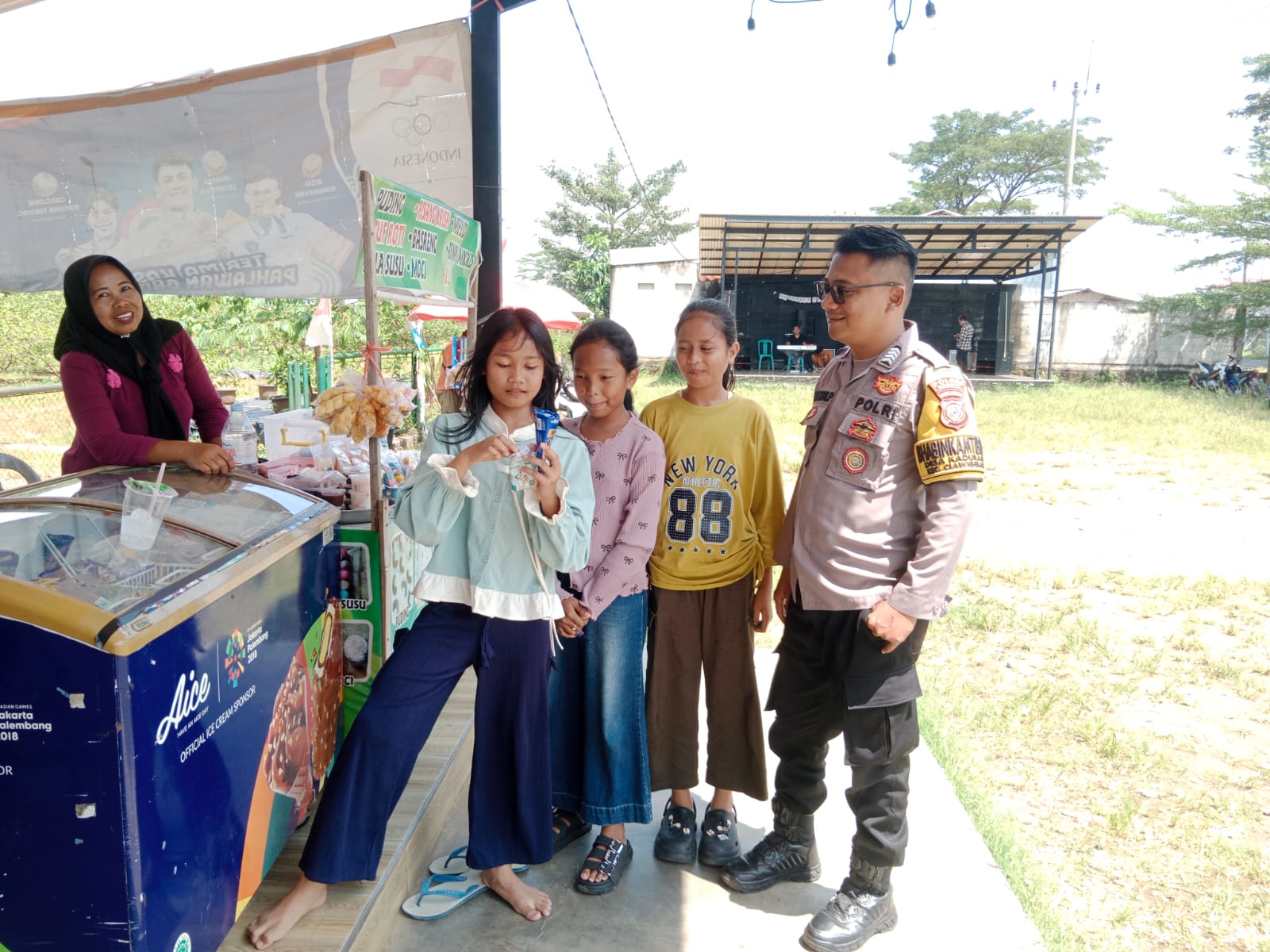 Aipda Mulyadi dan Bripka Hendri Priyono menyampaikan himbauan kamtibmas kepada masyarakat agar selalu menjaga keamanan barang bawaan, meningkatkan kewaspadaan terhadap potensi tindak kriminalitas, serta tetap menjaga ketertiban selama berwisata.