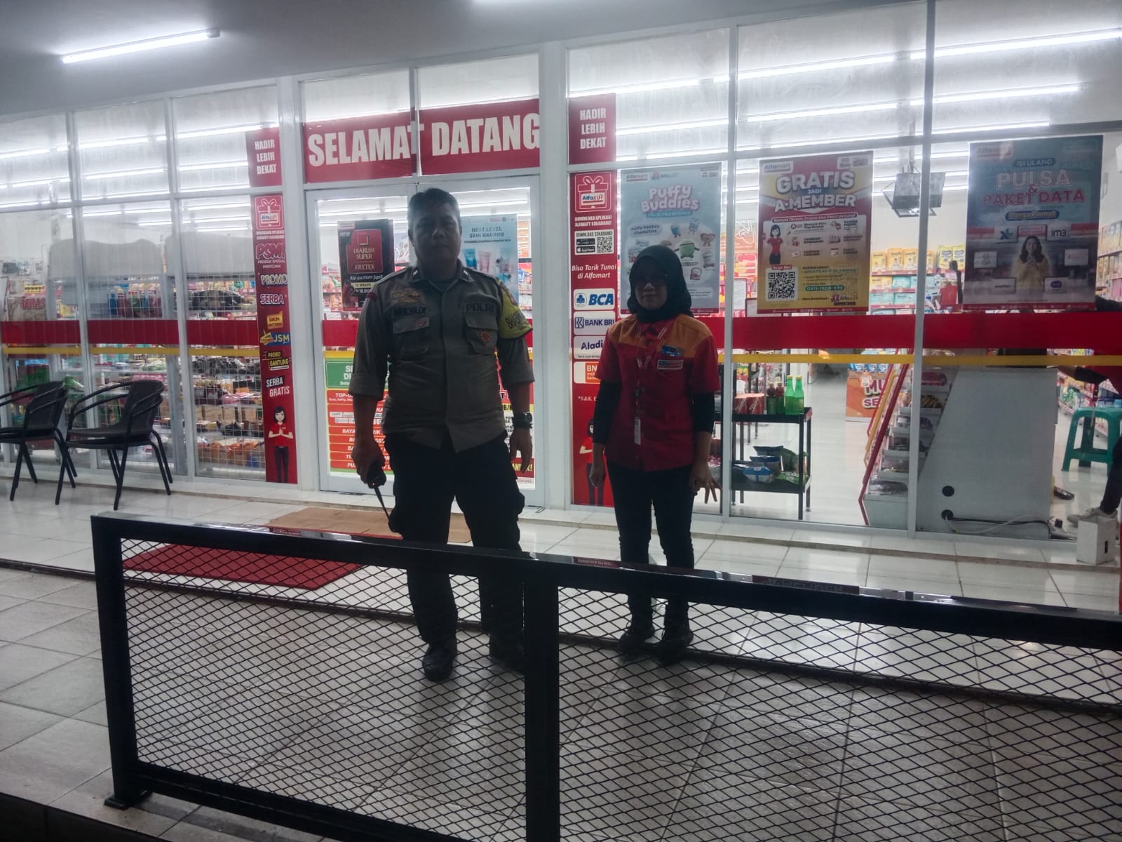 Polres Kuningan Polda Jabar – Anggota Bhabinkamtibmas Polsek Ciawigebang Polres Kuningan Polda Jawa Barat, Aipda Mulyadi dan Bripka Hendri Priyono, melaksanakan patroli KRYD (Kegiatan Rutin Yang Ditingkatkan) cipta kondisi pada malam hari dengan menyambangi Toko Alfamart di Desa Ciawigebang, Kecamatan Ciawigebang, Kabupaten Kuningan, Sabtu (7/2/2026).