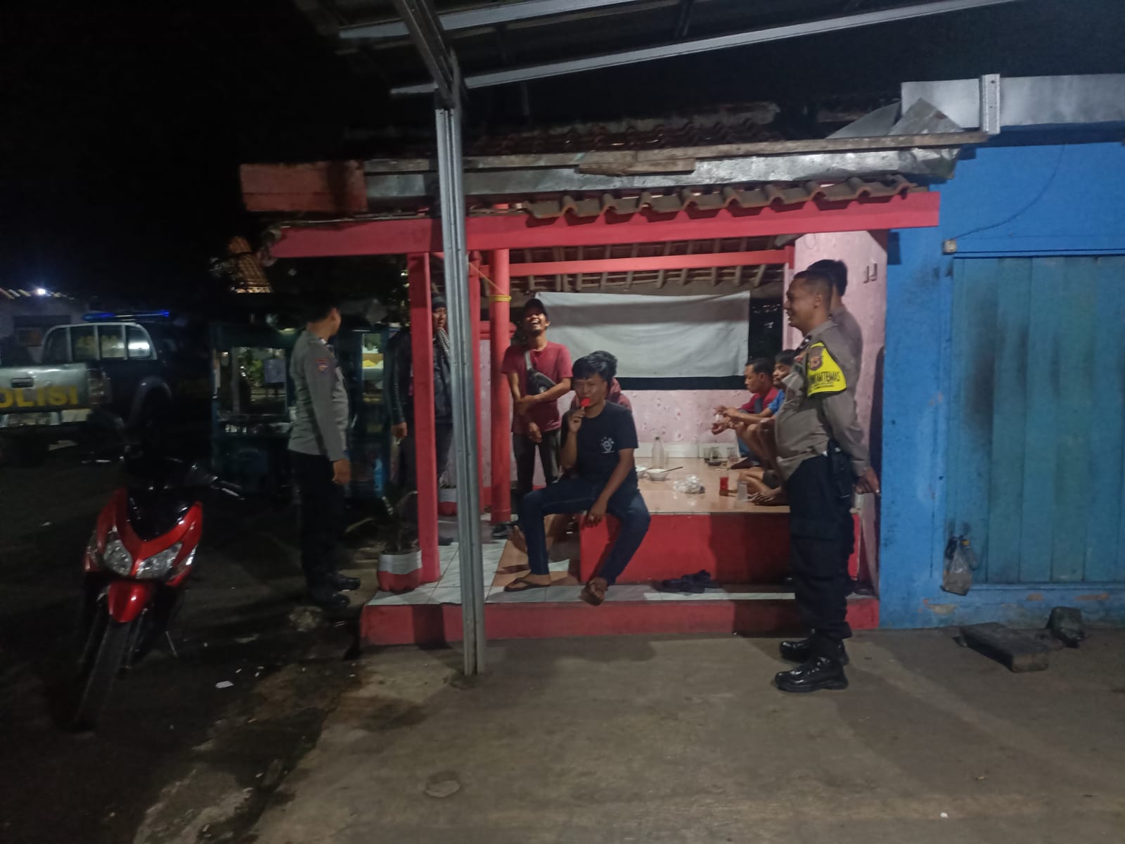 Kegiatan patroli tersebut dilakukan dengan menyambangi warga yang sedang melaksanakan ronda malam di Pos Kamling Desa Mekarjaya, Kecamatan Ciawigebang, Kabupaten Kuningan. Dalam kesempatan tersebut, petugas memberikan himbauan kamtibmas kepada warga agar tetap meningkatkan kewaspadaan serta menjaga keamanan lingkungan secara bersama-sama.