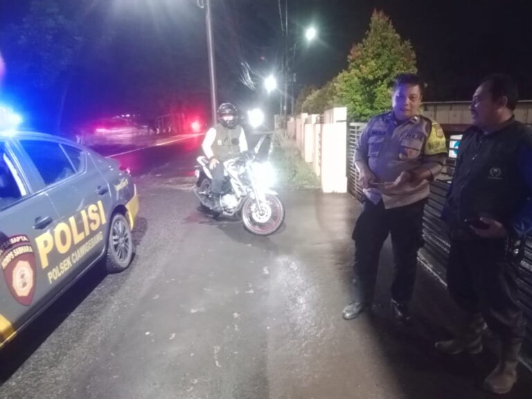 Polres Kuningan Polda Jabar – Anggota Bhabinkamtibmas Polsek Ciawigebang Polres Kuningan Polda Jawa Barat, Aipda Mulyadi dan Bripka Hendri Priyono, melaksanakan patroli KRYD (Kegiatan Rutin Yang Ditingkatkan) cipta kondisi pada malam hari dengan menyambangi Satpam Toko Aneka Sandang di Desa Kadurama, Kecamatan Ciawigebang, Kabupaten Kuningan, Sabtu (7/2/2026).