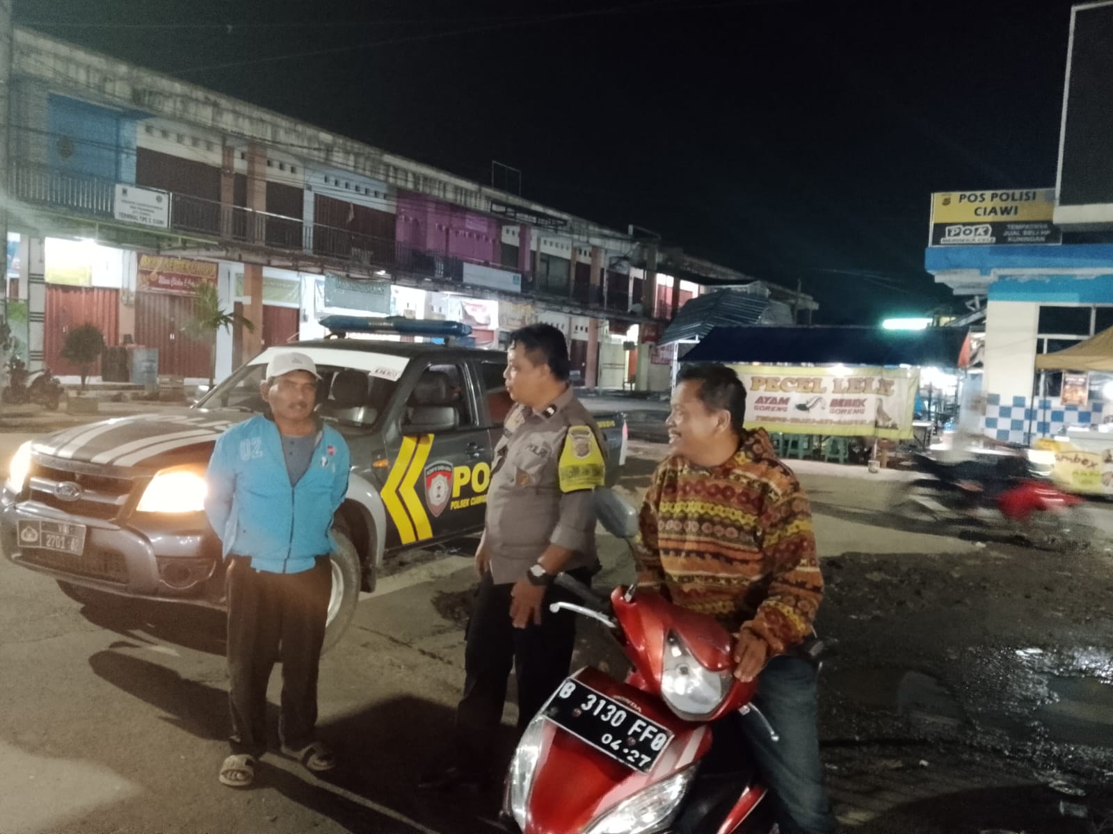 Patroli KRYD Malam Hari, Bhabinkamtibmas Polsek Ciawigebang Dekatkan Diri dengan Pengemudi Ojek Terminal Ciawigebang